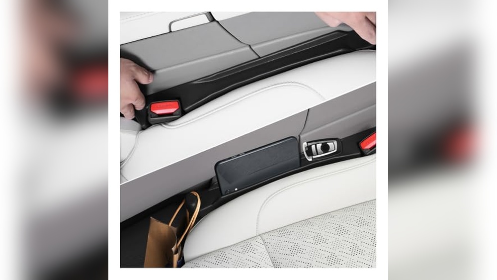 The YGDMD Car Seat Gap Filler Organizer prevents items from falling between seats. It fits gaps 1. 37-1. 49 inches wide. It also features a hook to secure it in place. This universal design suits most cars for added convenience.