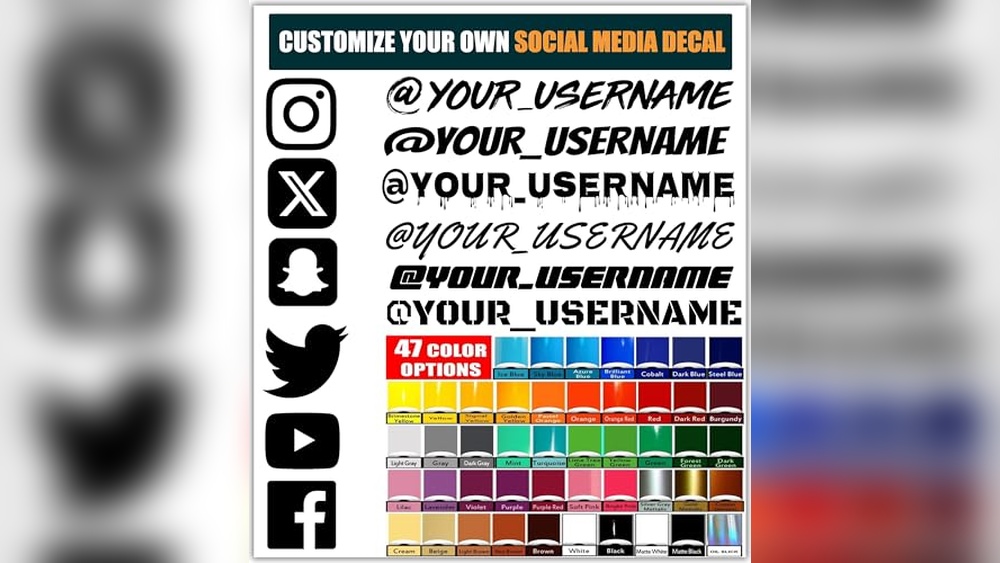 Custom car stickers make your profile stand out at any car event. VulgrCo offers durable, weather-resistant vinyl decals designed for cars. These stickers come in various sizes, colors, and fonts to match your style. Whether you want Instagram, YouTube, or Twitter logos, the options fit all popular platforms.