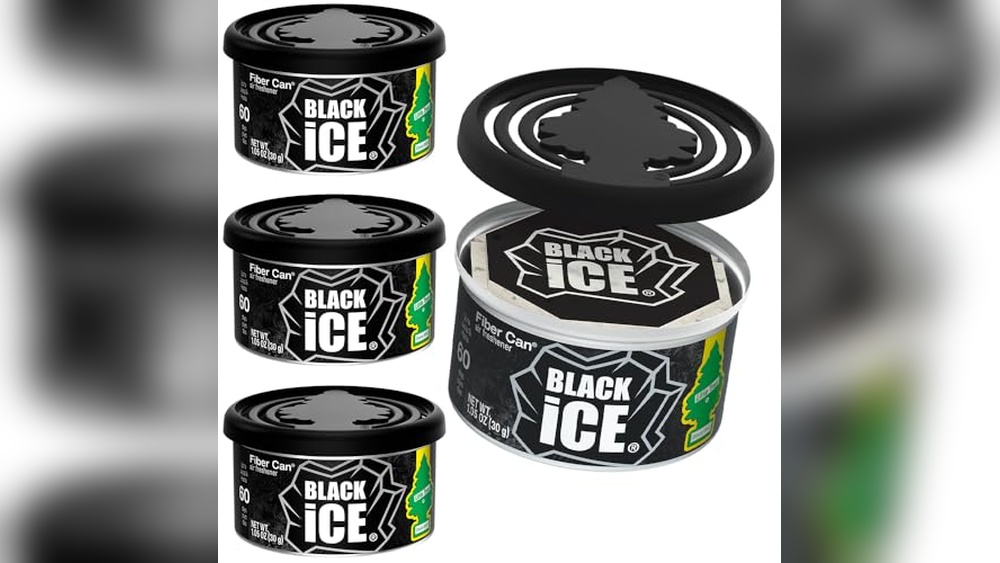LITTLE TREES Black Ice air fresheners use recycled fiber cans and hanging trees. They provide a strong scent that lasts for weeks in cars or homes, ensuring continuous freshness and odor elimination.