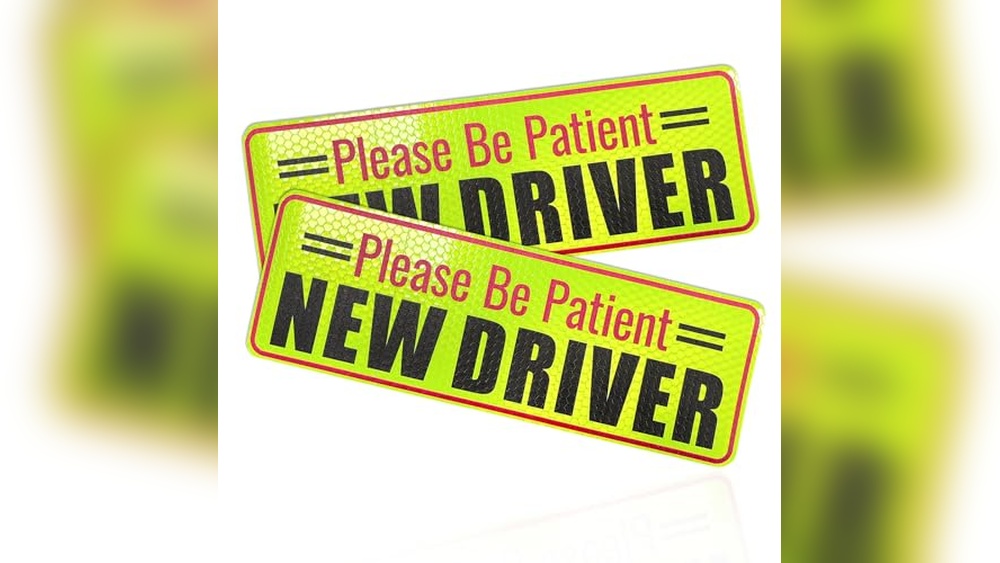 The reflective sign increases visibility, especially at night or in low light. It warns others to drive carefully near beginners.