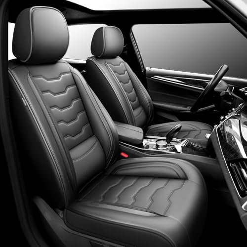 Conjie Fit Cruze Car Seat Covers Compatible with Chevrolet/Chevy Cruze 2011-2018 2019 – Premium Leather, Waterproof Breathable, All-Weather Seat Cushion Protecto (2 Front Seat Black)