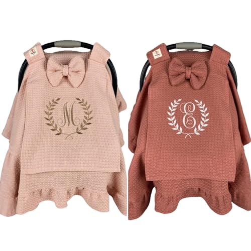 Personalized Baby Car Seat Covers, Custom Name Carseat Cover with Canopy and Breastfeeding Cover