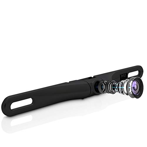 License Plate Rear View Camera – Built-in Distance Scale Lines Backup Parking/Reverse Assist Waterproof Adjustable Slim Bar Cam with 420 TVL Resolution & RCA Output Zinc Metal Chrome – Pyle PLCM18SC, 10 inches
