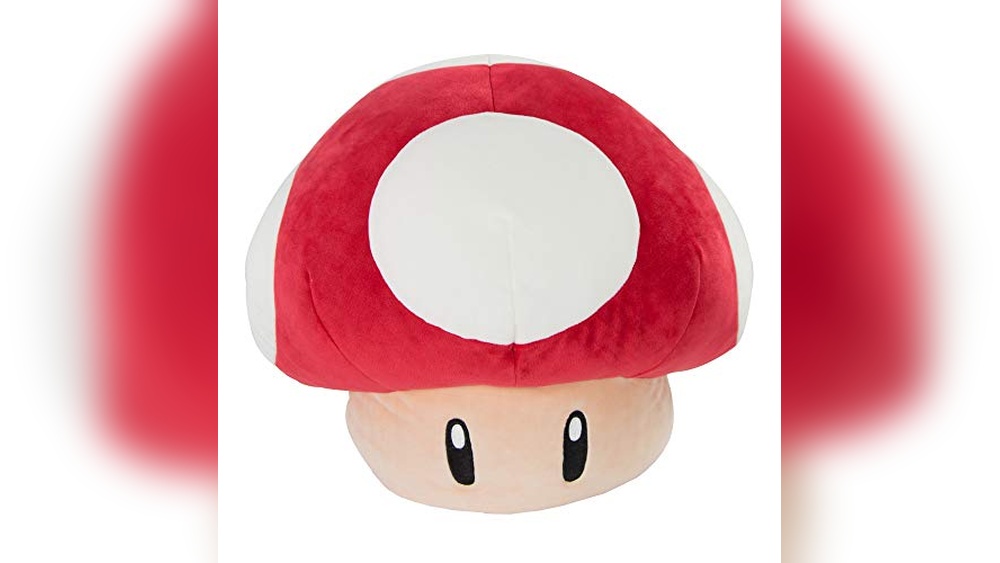 The Club Mocchi-Mocchi Red Mushroom plush is 15 inches tall and super squishy. It’s perfect for Mario Kart fans as a cute collectible or gaming room decor.