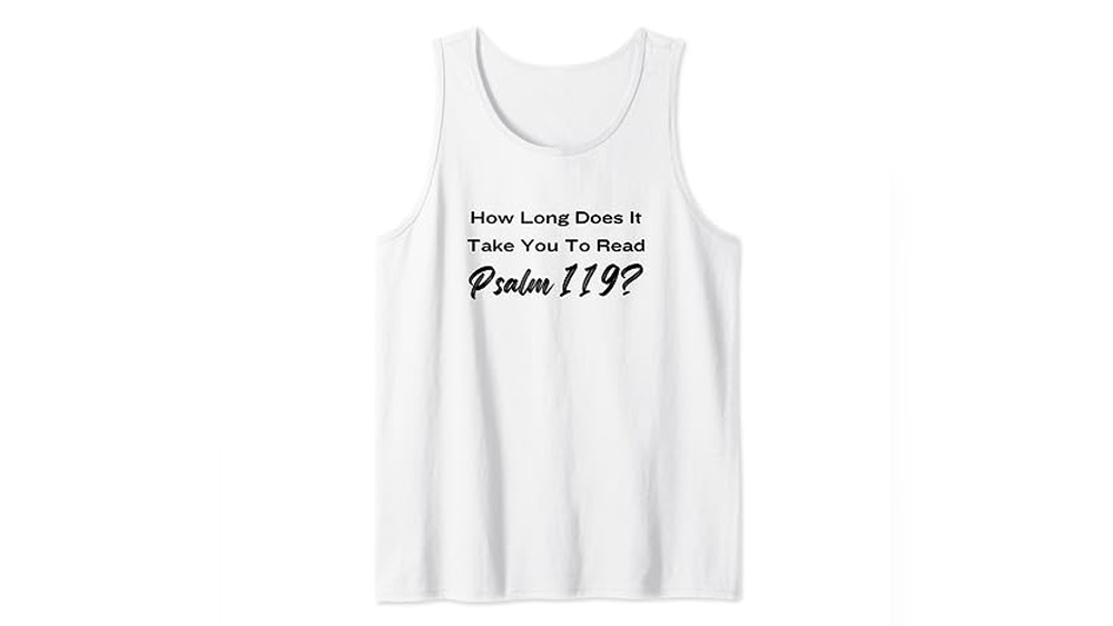 Beyond its aesthetic appeal, the tank top serves as a meaningful conversation starter about Psalm 119, the longest chapter in the Bible. Wearing this item can encourage deeper reflection and discussions about faith, scripture, and personal spirituality. It is a practical way for believers to express their devotion while enjoying the benefits of a comfortable and stylish garment.
